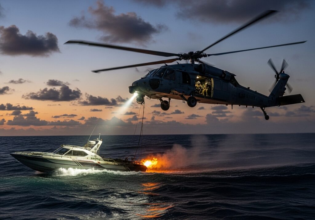 In early October 2025, the U.S. military launched a targeted strike off the coast of Venezuela that killed four men accused of being narco-terrorists. According to Secretary of War Pete Hegseth, the boat was carrying large amounts of illegal drugs intended to be smuggled into the United States. The vessel was described as being tied to a known terrorist organization and operating along a drug trafficking route frequently used to move narcotics north through the Caribbean.